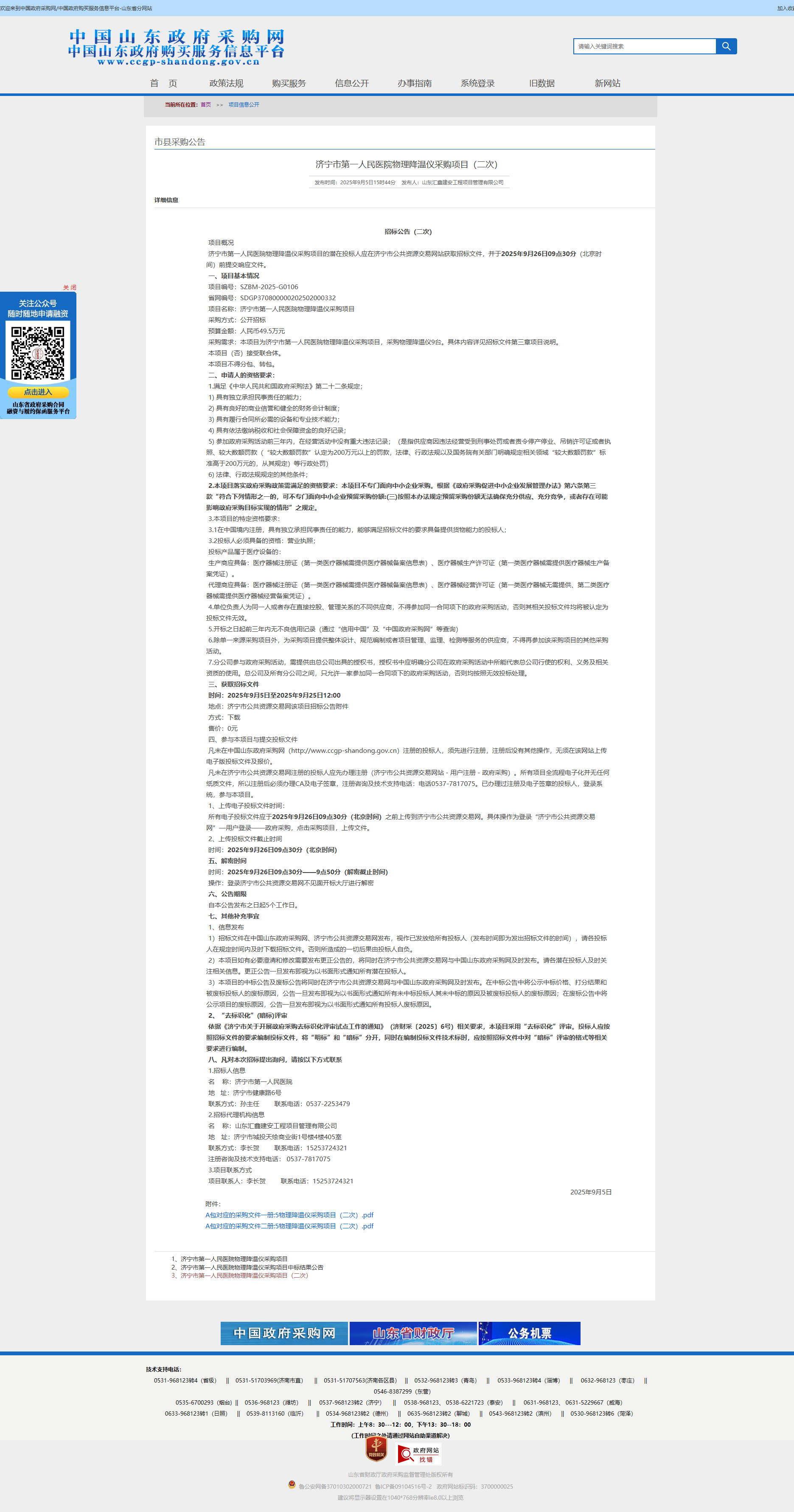 濟寧市第一人民醫(yī)院物理降溫儀采購項目(二次)招標(biāo)公告
