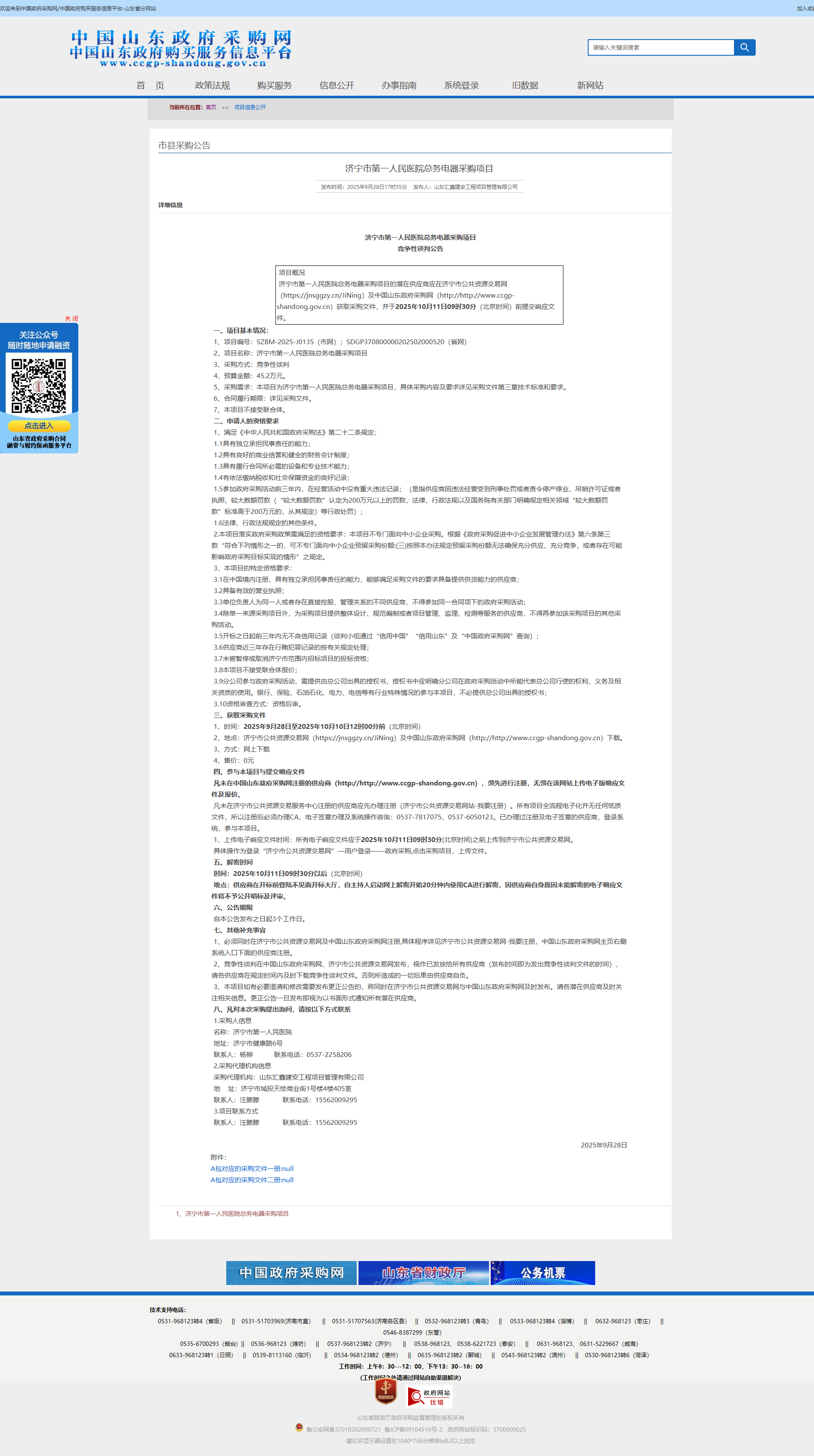 濟(jì)寧市第一人民醫(yī)院總務(wù)電器采購項(xiàng)目競爭性談判公告
