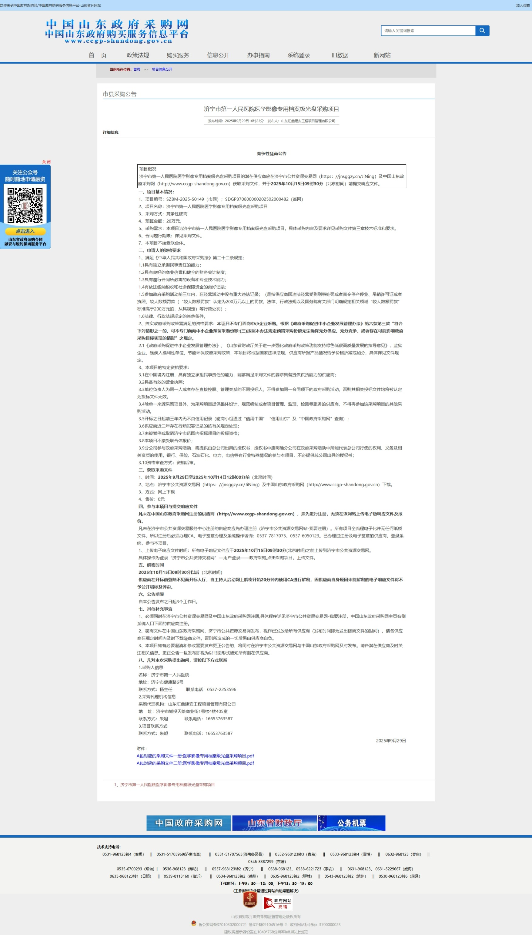 濟(jì)寧市第一人民醫(yī)院醫(yī)學(xué)影像專用檔案級(jí)光盤采購項(xiàng)目競(jìng)爭(zhēng)性磋商公告