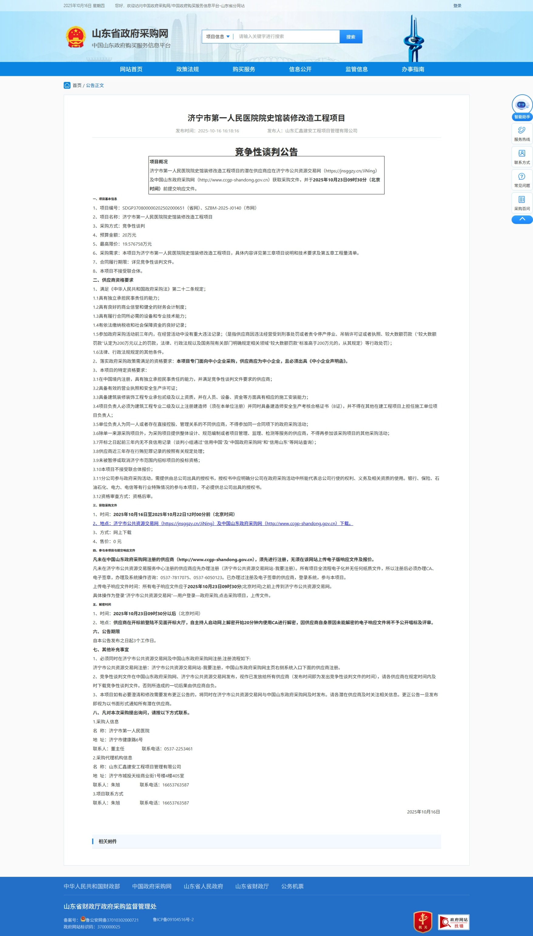 濟寧市第一人民醫(yī)院院史館裝修改造工程項目競爭性談判公告