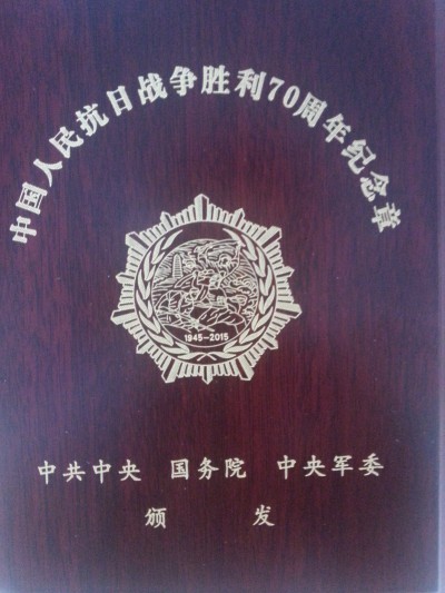 2015年9月3日是中國首個法定的“中國人民抗日戰(zhàn)爭勝利紀念日”。我院抗戰(zhàn)老戰(zhàn)士、老同志馬昭遠、武善英、馬仲華、趙金珍、龐維新、焦開喜、李玉臻、張利華等接受了黨和國家給予的榮譽,獲頒中國人民抗日戰(zhàn)爭勝利70周年紀念章。