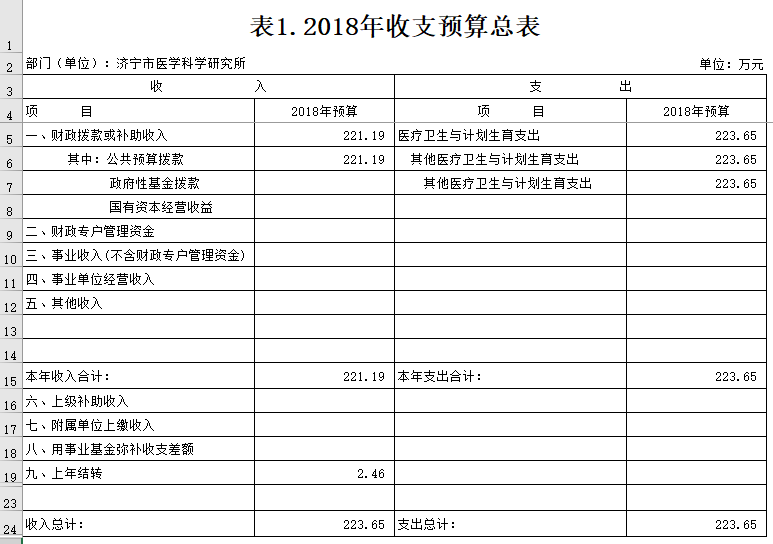 濟寧市醫(yī)學科學研究所2018年收支預算總表(預算公開表)