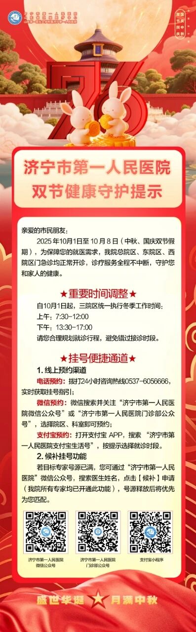 濟寧市第一人民醫(yī)院雙節(jié)健康守護提示