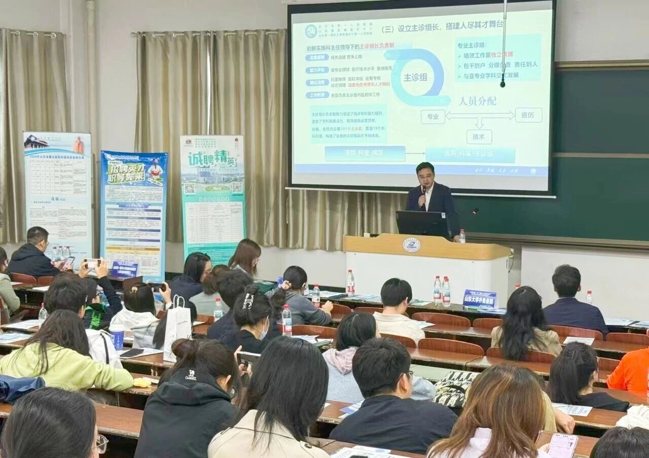 在專場宣講會上,鐘海濤以“百年一院”的輝煌歷史與高質量發(fā)展成效為引,全面展示了醫(yī)院在學科建設、科研平臺及人才成長生態(tài)上的核心優(yōu)勢,并就醫(yī)院傾力打造的支持人才發(fā)展的“十項措施”等政策進行了精準解讀,字里行間滿載著醫(yī)院求賢若渴、珍視人才的拳拳誠意,深深打動在場學子。